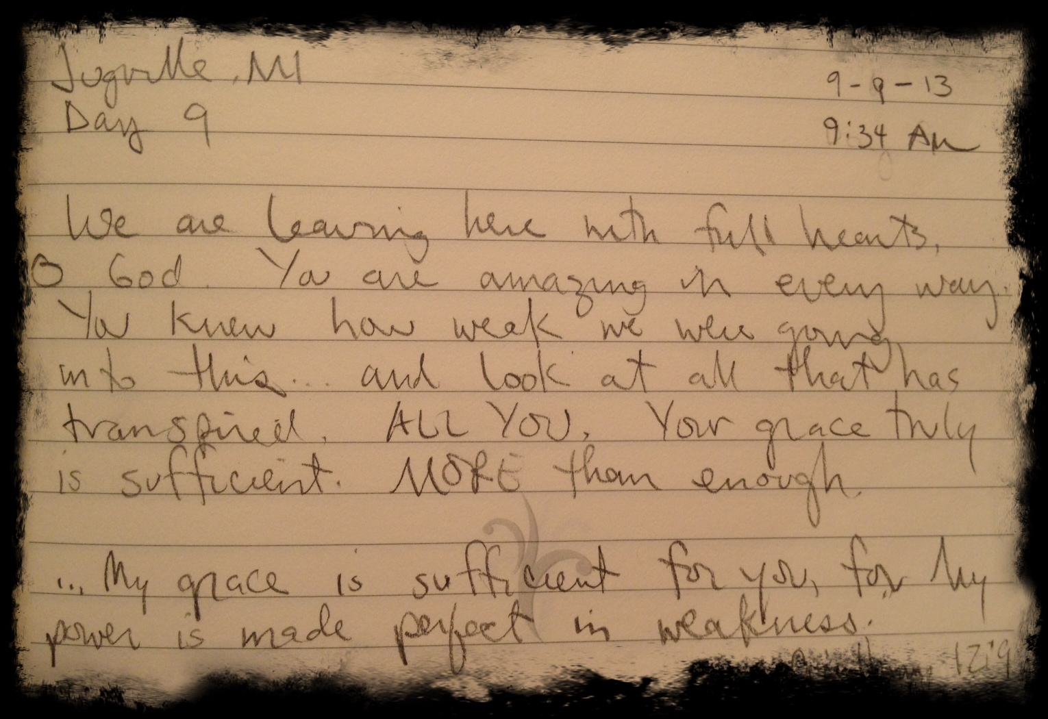 Ever since Clint shared this desire with me, I’ve watched and prayed as he has taken two verses at a time and written them out repeatedly on sheets of lined paper. I hear him saying the verses out loud, at times, and I’ve noticed that there’s a special quiet place he goes to in his mind when he’s memorizing them. He’s been at it for month’s.